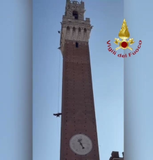 La Nazione, Siena 26 Marzo 2026 - Emergenza in Piazza del Campo, ma è un’esercitazione. Pompieri nei bottini e sulla Torre… In un secondo scenario simulando la presenza di un infortunato corpulento, il personale Saf dopo averlo messo in sicurezza in apposita barella lo ha calato esternamente dalla Torre fino a terra. Pompieri in azione Dal terrazzino sotto ‘l Campanone oppure avecci l’ali d’un piccione come si pòl soccorre una persona ché la barella un passa le scale, |