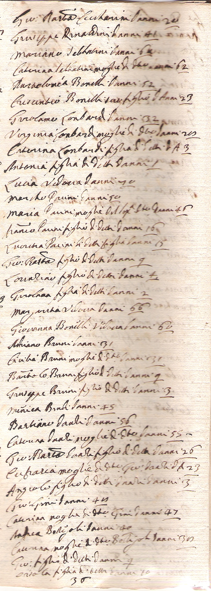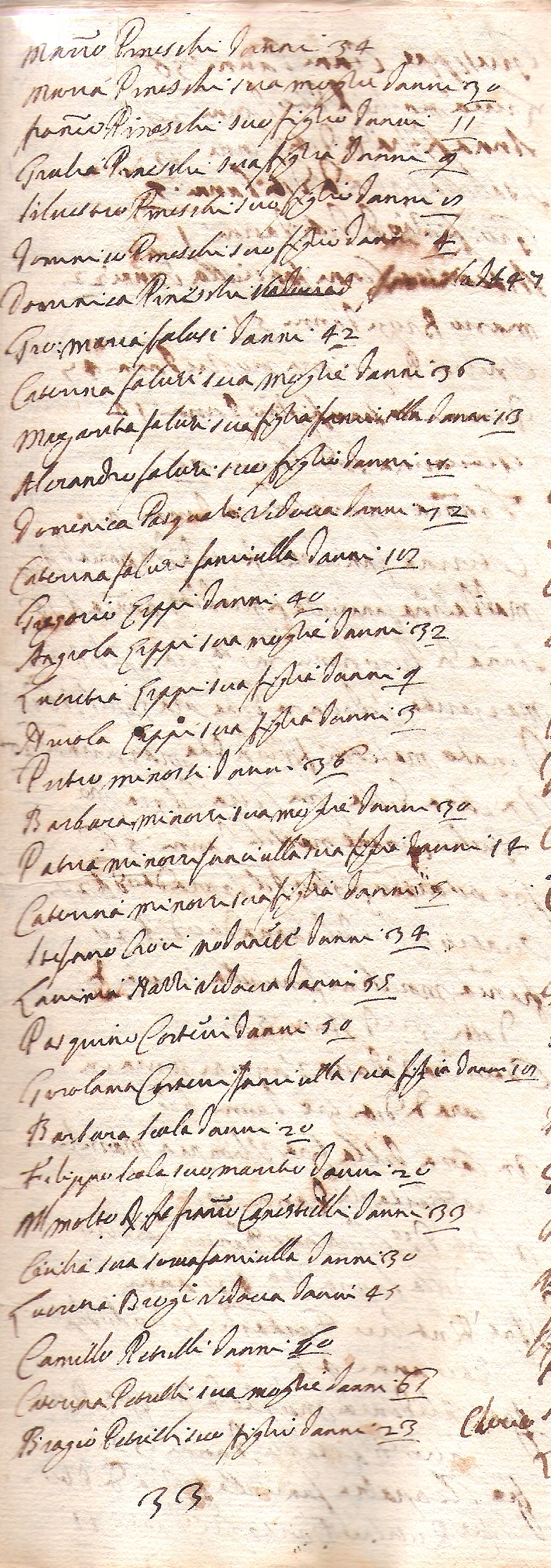 Torna all'elenco delle parrocchie Elenco famiglie per pagina manoscritto 1 - Pacchiarotti Filide 1 - Farnesi Francesca 1 - Vannini Martio 1 - Fontani Benedetto 1 - Lotti Domitilla 1 - Cherici Salustio 1 - Crocini Camilla 1 - Radicchi Alessandro 1 - Butini Michele 1 - Cardinali Agata 2 - Cappannoli Orsola 2 - Salvucci Camilla - Vedova 2 - Lalli Cecilia 2 - Cini Austino 2 - Giannettini Lucretia 2 - Cheli Juditta 2 - Pieri Giuseppe 2 - Cappacci Francesco 2 - Vignali Lodovico 2 - Giardini Pavolo 3 - Manni Gio. Maria 3 - Bettini Gio: - Chierico 3 - Roggini Francesco 3 - Pagni Francesco 3 - Donnini Camilla 3 - Fodari Benedetto 3 - Bartoli Mariano 3 - Betti Gio. Batta 3 - Boschi Ottavia 3 - Brancardi Flaminio 3 - Fabbrucci Gio. Pavolo 3 - Lensi Oratio 3 - Curini Margarita 3 - Mastachi Giovanni 4 - Pacchiarotti Niccolò 4 - Burrazzi Jacomo 4 - Belcari Carlo 4 - Scala Pietro 4 - Bignati Ulivieri 4 - Luchi Caterina - Vedova 4 - Metrani Lorenzo 4 - Casini (?) Giuseppe 4 - Cacciaguerri Caterina 4 - Paruquat (?) Oduardo - Inglese 4 - Peruzzi Pietro 5 - Toccafondi Maddalena - Fanc - Terziaria 5 - Corsetti Lucretia 5 - Quercioli Caterina 5 - Bolognini Francesco 5 - Falusi Domenico 5 - Rustici Bernardino 5 - Russi Micalagnolo 5 - Vaij Cosimo - Sacerdote - Nob. 5 - Pieraccini Domenico 5 - Damiani Jacomo 5 - Caramati Domenico - Sacerdote 5 - Frosini Giovanni 5 - Leoncini Jacinto 5 - Galli Giovanni 5 - Pianigiani Pasquino 6 - Ciogni Giuseppe 6 - Cerretelli Girolama 6 - Corazini Micalagnolo 6 - Corsini Girolamo 6 - Mignarri Camilla 6 - Taccini Domenico 6 - Ferrari Caterina 6 - Dei Tori Lucia - Nob. S.ra 7 - Moccholini Domenica 7 - Melani Giuseppe 7 - Salvucci Gio. Batta 7 - Guidarelli Emilio - Sacerdote - Nob. 7 - Saracini Fortunio - Nob. 7 - Tozzi Domenico 8 - Raggi Marco 8 - Poggi Agnolo 8 - Giomi Domenico 8 - Palagi Polito 8 - Petri Gio. Batta 8 - Venturi Conte - Nob. 8 - Tolomei Juditta - S.ra 9 - Vecchi Lucia - S.ra 9 - Menichucci Carlo - Sig. 9 - Muzzi Lucchese 9 - Tonini Carlo 9 - Tosi Domenico 10 - Malagridi Detio 10 - Petrini Vincentio 10 - Cappellinin Pier Maria 10 - Gaij Giriolamo 10 - Dameli Carlo 10 - Cornacchini Giuseppe 10 - Processi Cristofano - Ser 10 - Fancelli Girolamo - Ser 11 - Leoncini Alessandra - Vedova 11 - Recchi Michalagnolo 11 - Lorenzini Gio: Maria 11 - Tuccini Niccolò 11 - Chiavistrelli Bastiano 11 - Baldi Gio: Maria 11 - Lorenzini Maddalena (Vedova) 11 - Enghirami Gio. Batta 11 - Montini Domenico 11 - Cecharini Girolama 12 - Rinaldini Giuseppe 12 - Sabbatini Mariano 12 - Bonelli Bartolomea 12 - Lambardi Girolamo 12 - Pacini Marcho 12 - Bonelli Giovanna 12 - Bruni Adriano 12 - Danzi Bastiano 12 - Gini Giovanni 12 - Bozzegoli Andrea 13 - Melani Agnolo 13 - Canocchi Gio. Batta 13 - Falusi Gio. Andrea 13 - Piatellini Bastiano 13 - Volpini Bernardino 13 - Bacci Giuseppe 14 - Leoni Luca 14 - Cappannoli Silvestro 14 - Guidi Giovanni 14 - Giusti Girolamo 14 - Partini Portia 14 - Semboloni Giuseppe 14 - Bocci Bartolomeo 14 - Brandi Camillo 14 - Bufalini Giovanni 15 - Petrini Pasquino 15 - Vecchi Giovanni 15 - Pacini Eusepia 15 - Inamorati Caterina 15 - Gambassi Bartolomeo 15 - Casacci Girolama - Vedova 15 - Zucchetti (Sacchetti) Mattio 15 - Bianciardi Agata 16 - Porciatti Lorenzo 16 - Caciuoli Maria - Vedova 16 - Mulinacci Niccolò 16 - Mori Camillo 16 - Gagliardi Antonio 16 - Chiavistrelli Giovanni 16 - Mianni Michelagnolo 16 - Nutini Filippo 16 - Bellacchini Caterina - cieca 17 - Manni Andrea 17 - Barbiari Diamante 17 - Rossi Francesco 17 - Lamberti Antonio Maria 17 - Vieri Giovanni 17 - Peruzzi Ascanio 17 - Corti Luca 17 - Preteni Maddalena 17 - Cencini Ignatio 18 - Loli Panfilio 18 - Bozzegoli Gio. Batta 18 - Lorenzo - muratore 18 - Ponsi Iacomo 18 - Meucci Bartolomeo 18 - Borgnoli Gio. Maria 18 - Mulinacci Gio. Batta 19 - Scacchi Francesco 19 - Lorenzo - Contadino 19 - Peruzzi Girolamo 19 - Sarchi Giovanni 19 - Iguerra Cosimo 19 - Pasquali Maddalena 19 - Costantini Gio. Batta 19 - Carli Giuseppe 19 - Fei Gio. Batta 20 - Cinai Alessandra Vedova 20 - Roggi Menica - Vedova 20 - Manganelli Margherita 20 - Biagi Caterina - Vedova 20 - Masotti Dorotea 20 - Poneti jacomo 20 - Borghi Caterina 20 - Cencini Virgilio 20 - Orselli Bastiano 20 - Vannini Giuseppe 20 - Fineschi Bastiano 20 - Corini Gio. Batta 21 - Pineschi Marco 21 - Falusi Gio. Maria 21 - Lippi Gregorio 21 - Minorsi Pietro 21 - Croci Stefano - milanese 21 - Cortecci Pasquino 21 - Scala Filippo 21 - Canestrelli Francesco - Sacerdote 21 - Petrilli Camillo 22 - Romitelli Alessandro 22 - Donati Austino 22 - Mattei Gio. Batta 22 - Pavolini Orizia - Vedova 22 - Brogiotti Dianora 22 - Lapi Caterina 22 - Cappelli Caterina 22 - Cafaggiuoli Antoni - Sacerdote - da Sinalongha 22 - Pagni Pietro 22 - Rustioni Gio. Maria 22 - Landucci Salustio - Sig. 22 - Giannetti Girolamo - Sacerdote 22 - Bruni Scipione - Chierico 23 - Zanobi Antonio 23 - Galli Carlo - Sacerdote 23 - Brigidi Filippo 23 - Nebbi Enea - Sacerdote 23 - Pagni Bernardino - Ser 23 - Bellucci Antonio 23 - Scala Giuseppe 23 - Centi Gio. Domenico 24 - Cenni Giuseppe 24 - Brogi Marco 24 - Sodi Giovanna 24 - Lapi Francesca 24 - Maffeozzi Margarita 24 - Marsili Celia - S.ra 24 - Tartagli Marsili Ulimpia - S.ra 25 - Venturi Alfonso 25 - Taddioli Jacomo - aretino 25 - Mannotti Francesco 25 - Allegretti Girolamo - N. Sig. 25 - Cerini Pietro - N. Sig. 25 - Mannini Michalagnolo 26 - Porrini Michalagnolo - Ser 26 - Santa Croce Francesco 26 - Ticciati Oratio 26 - Ferri Giulio - Sr. 26 - Ferri Salustio 26 - Agazarij Adriana - Vedova - S.ra 27 - Frittelli Virgilio 27 - Lachi Gabbriello 27 - Palmieri Cristina - S.ra 27 - Pasquino 27 - Marescotti Asdrubale 28 - Ciacci Niccolò 28 - Ulivi Lorenzo 28 - Lampani Domenico 28 - Malagrida Luigi 28 - Gio. Batta 28 - Fantastici Francesco 28 - Petri Agnolo 29 - Tommasi Caterina - Vedova 29 - Finetti Vincentio 29 - Cappelli Luca 29 - Lorenzini Domenico 29 - Zoccholi Francesco 29 - Spannocchi Gio. Batta 30 - Turamini Jacomo 30 - Sozzi Claudio 30 - Serpi Dom