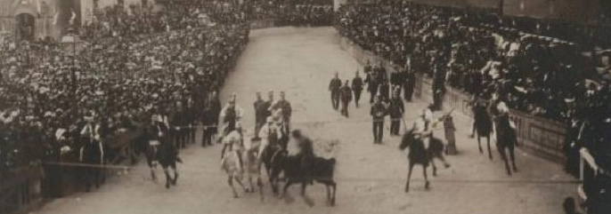 Scendiamo un po' più nel dettaglio e cerchiamo di capire meglio perché possiamo parlare di rincorsa tra la fine del 1800 e l’inizio del 1900. Oltre alle foto, di cui sopra, che evidenziano abbastanza bene che già ad inizio ’900 la decima contrada rimaneva fuori ed entrava da dietro, dando il tempo di mossa, abbiamo trovato un documento molto interessante, riportato nel testo di Mauro Marzucchi “La Contrada Dell’Istrice – Memorie Storiche” . Nel testo di Marzucchi, a pagina 50 si narra di un’assemblea tenuta dal popolo di Camollia a seguito del Palio del 1904; testualmente si legge che “ ...Poi si insinua un sottile dubbio. E’ quattro volte che L’Istrice è di rincorsa. C’è qualche incaricato del Comune che ci danneggia “(in realtà saranno 3 volte consecutive). E’ importante questa ricostruzione storica offerta da Marzucchi, attraverso le memorie del popolo istriciaiolo, perché ci fa capire come nel 1904, già il concetto di rincorsa sia ampiamente sdoganato e non solo; si evince anche, in attinenza anche ai giorni nostri, come la posizione di rincorsa sia percepita come penalizzante, tanto da far insinuare la preoccupazione negli istriciaioli che ci sia qualcuno che voglia danneggiarli. Queste poche parole, ci offrono però anche un altro spunto di riflessione: Quale ?