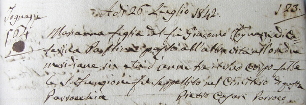 Morta a S.Dalmazio il 26 luglio 1842 il giorno dopo la morte del padre.