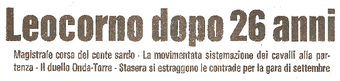 Dopo ventisei anni il Leocorno torna alla vittoria, la cuffia passa al Bruco, ancora perseguitato dalla malasorte.